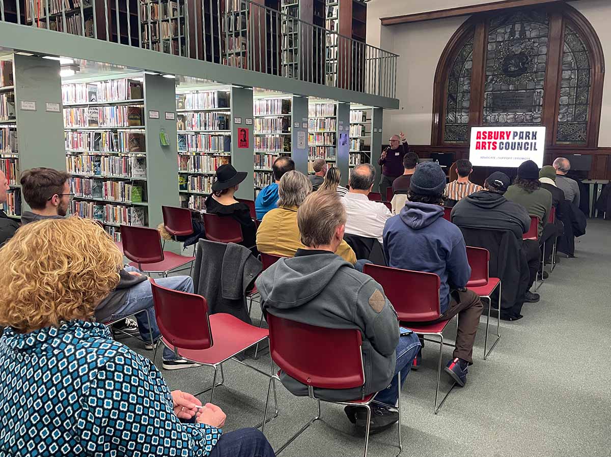 The January Meetup was held at the Asbury Park Public Library and featured a lively Q&A with local filmmaker Anthony Curry who answered questions about his guerrilla techniques in making his award-winning indie film T.R.A.P. which is an acronym for The Real Asbury Park. Producer/Director Paul Kaplan also outlined a new filmmaking initiative for distribution on Asbury Park cable access channel, APTV, entitled, “2 Minutes With . . .” This is a joint effort between APAC and APTV, to encourage filmmakers to reach out to local artists and businesses and profile them for two minutes. The finished piece can then be uploaded to APTV and if accepted, may earn the filmmaker $100 in local gift cards.