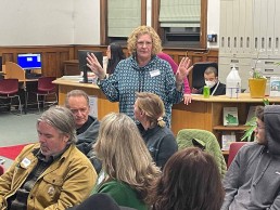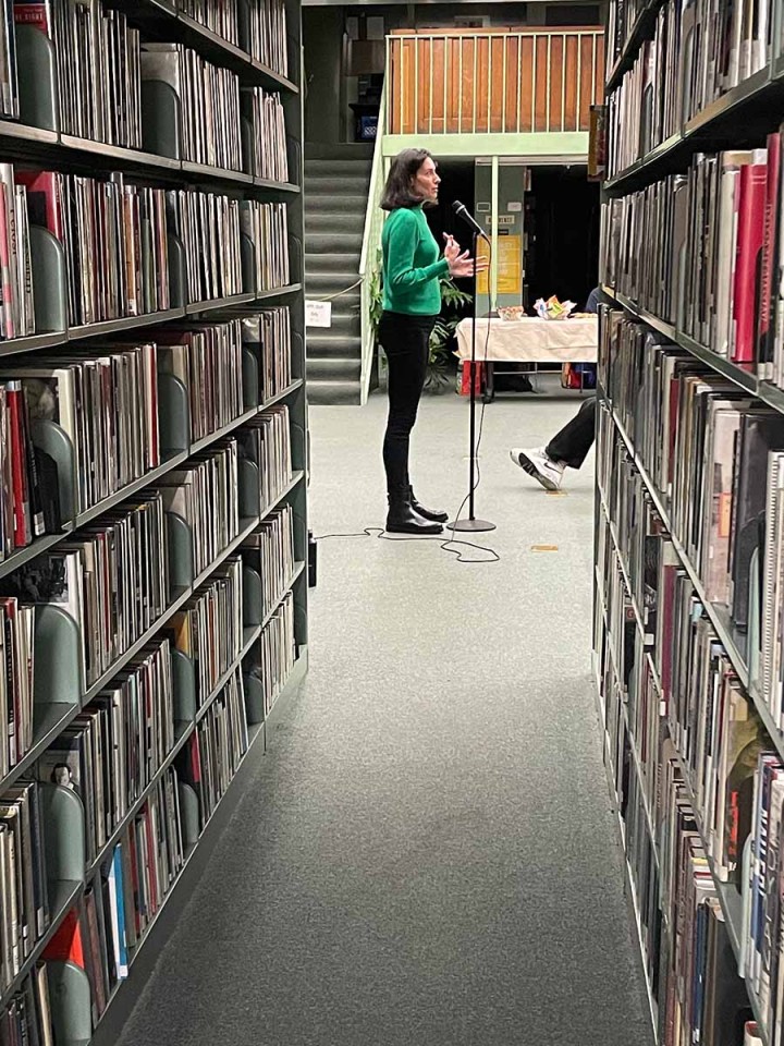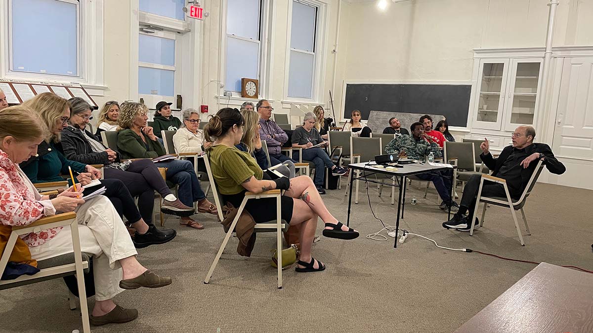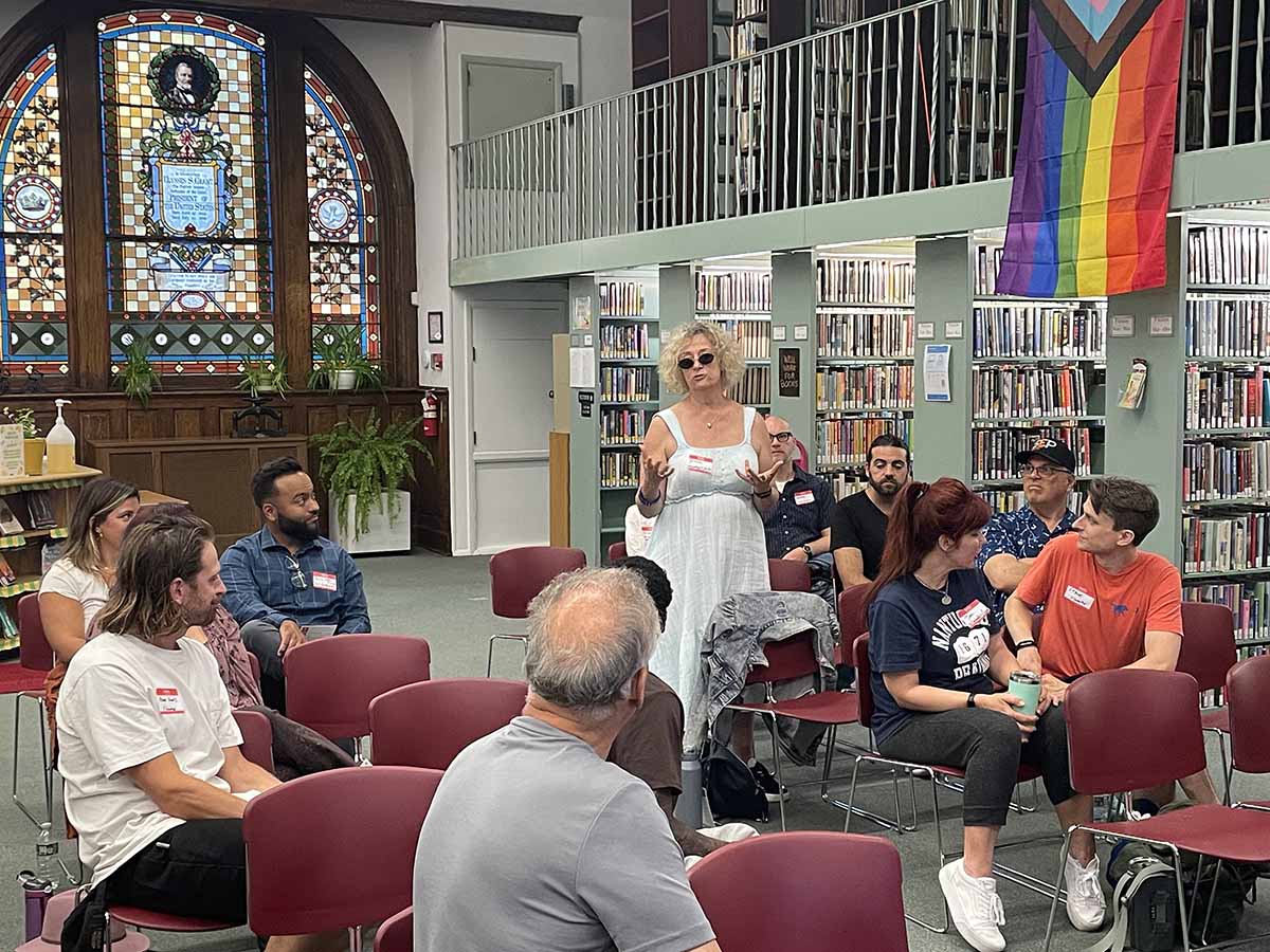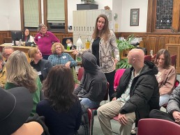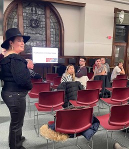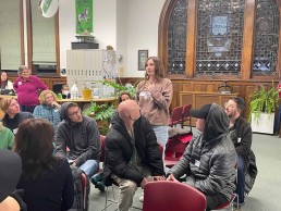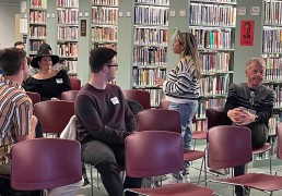 The March Meetup, also at the AP Library, featured guest speaker, Serena Schuler, award-winning writer, director, and series creator who spoke to the group about fundraising for her series Makeshift Society.