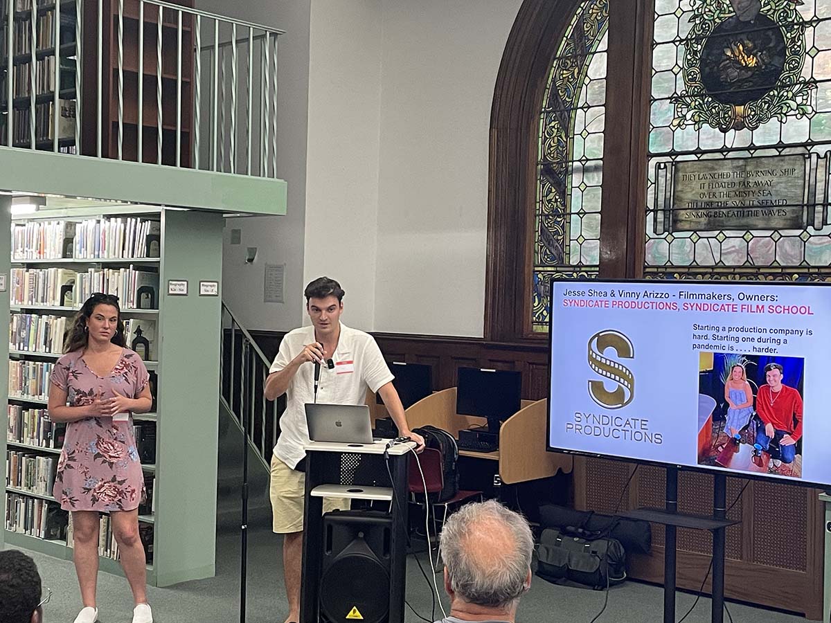 The guest speakers at the June Meetup were Jesse Shea and Vinny Arizzo, owners of Syndicate Productions who shared their experiences of starting a production company in the middle of the pandemic and the Syndicate Film School, a training program for students learning the film industry in Jamesburg, NJ. In addition, Asbury Park High School’s incoming principal, Perry Medina, spoke to the group about his plans to expand arts offerings for students.